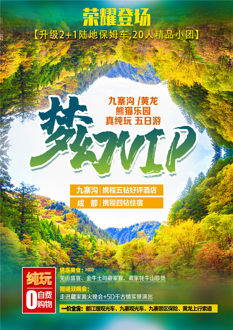 • 5夢幻VIP20人小包團-九寨溝、黃龍、熊貓基地五日游